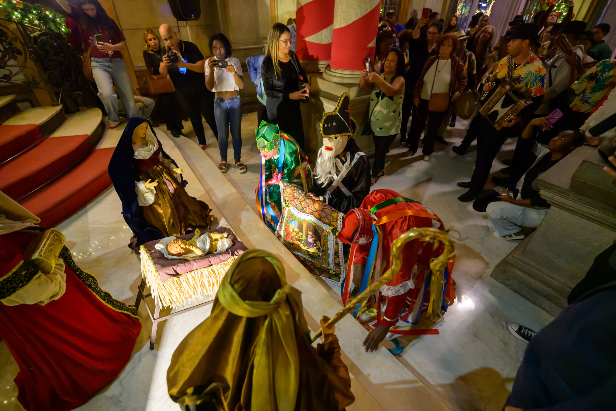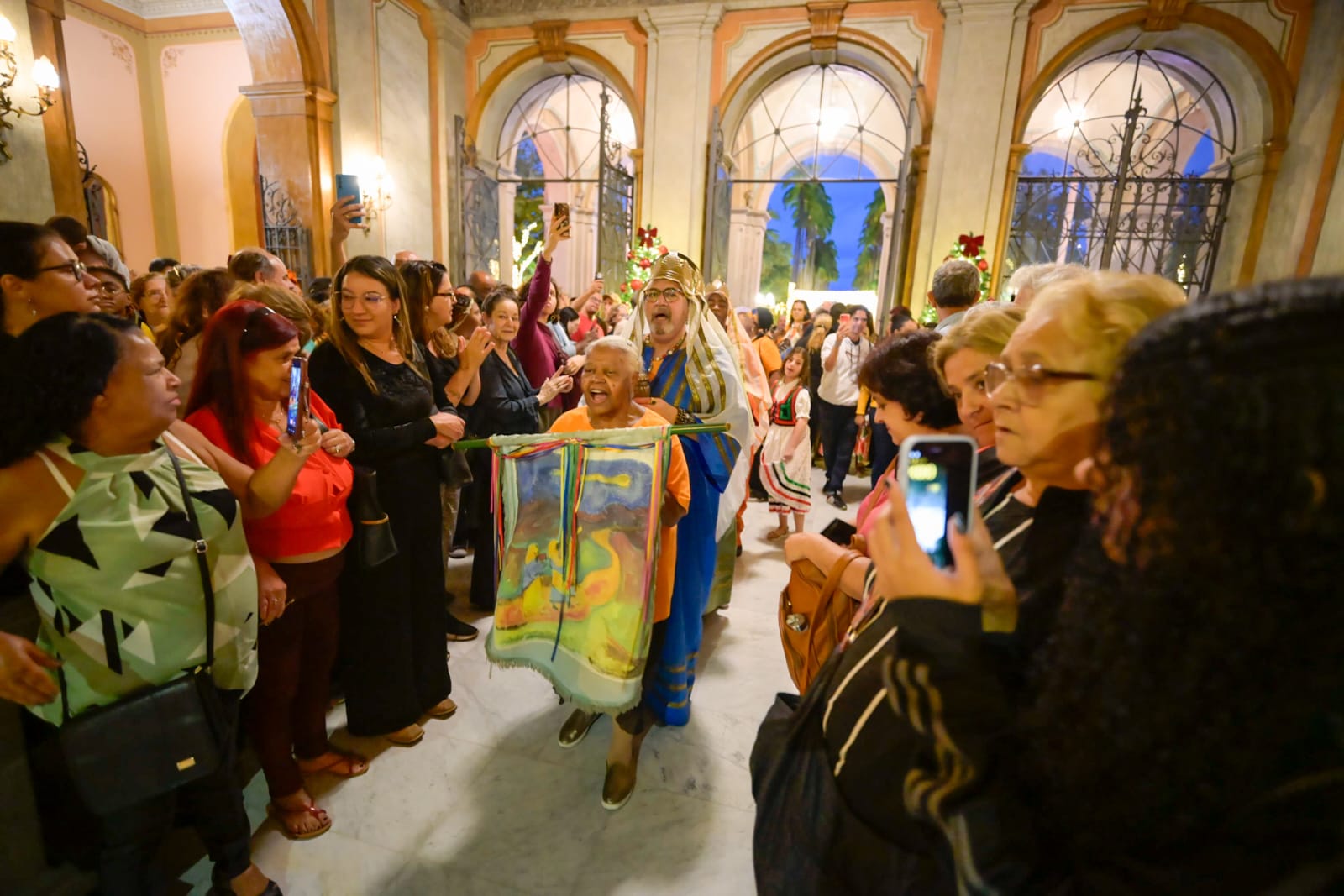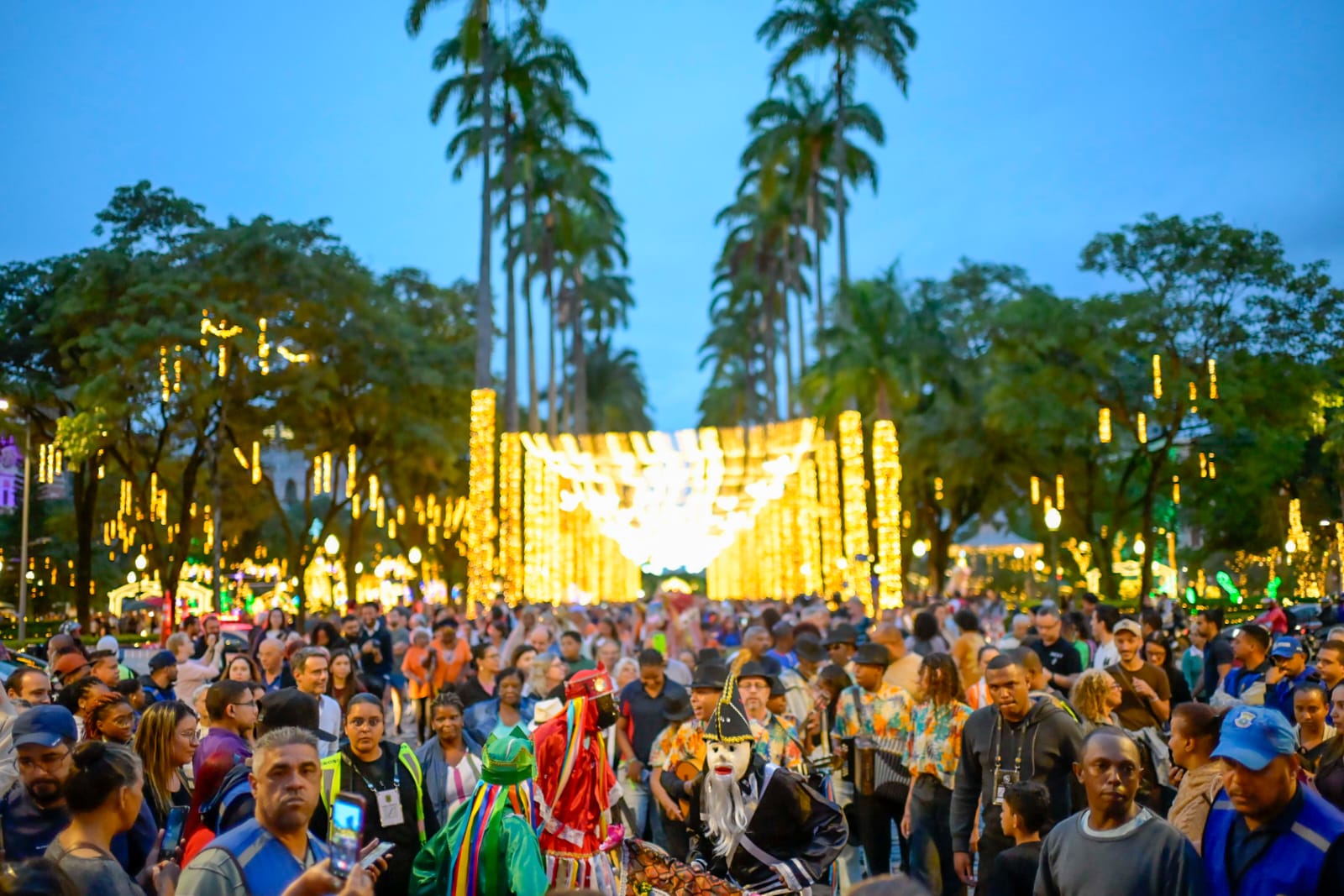 A Praça da Liberdade recebeu o contagiante Cortejo de Folias de Reis, na terça-feira (6/01), uma celebração que uniu música, devoção e tradição para marcar o encerramento do Natal da Mineiridade. A iniciativa é do Governo de Minas, por meio da Secretaria de Estado de Cultura e Turismo (Secult-MG), da Fundação Clóvis Salgado (FCS) e do Instituto Estadual do Patrimônio Histórico e Artístico de Minas Gerais (Iepha-MG).