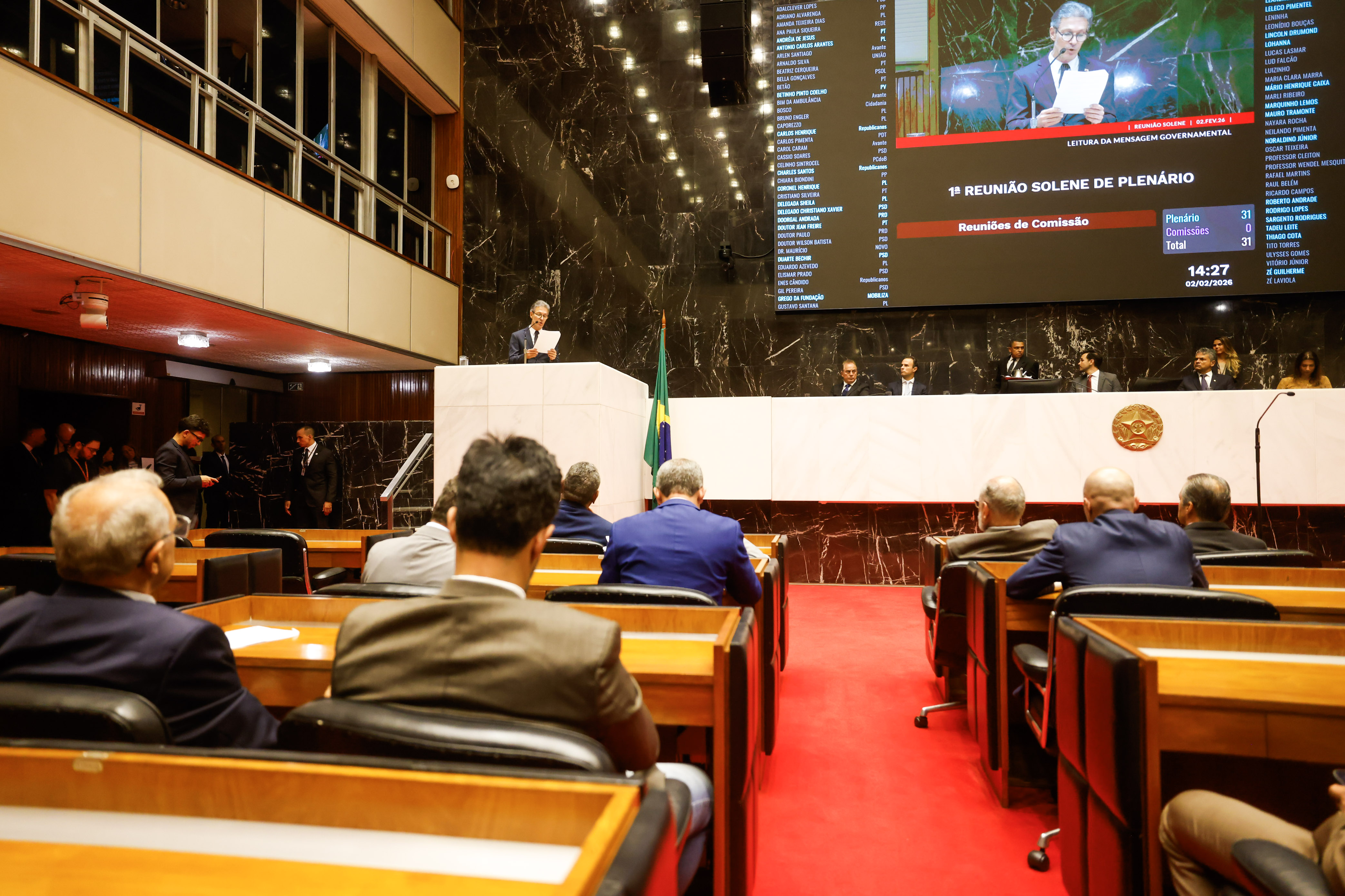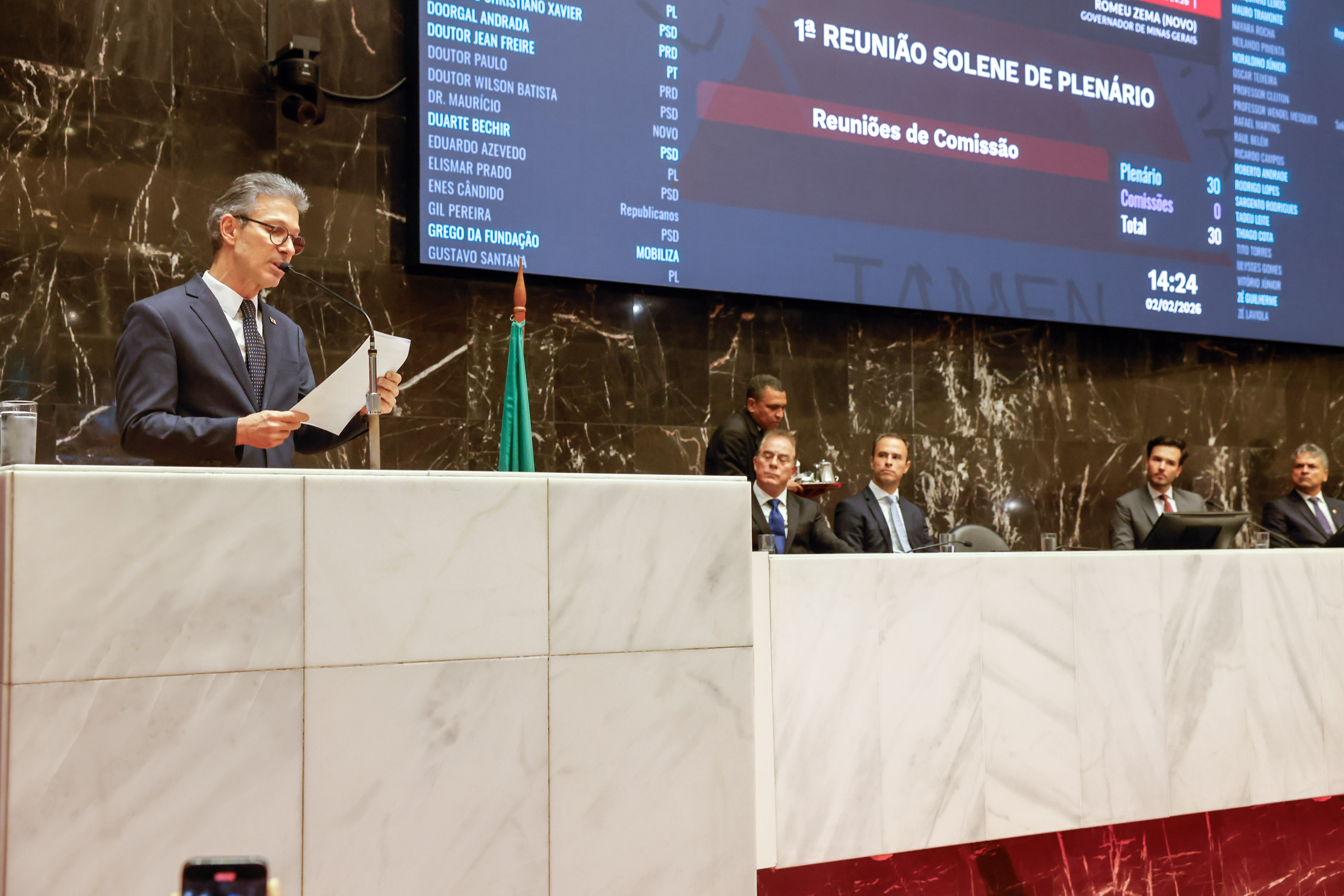 O governador Romeu Zema participou, nesta segunda-feira (2/2), da solenidade de instalação da 4ª Sessão Legislativa Ordinária da 20ª Legislatura, que marca a retomada dos trabalhos dos deputados da Assembleia Legislativa de Minas Gerais (ALMG).