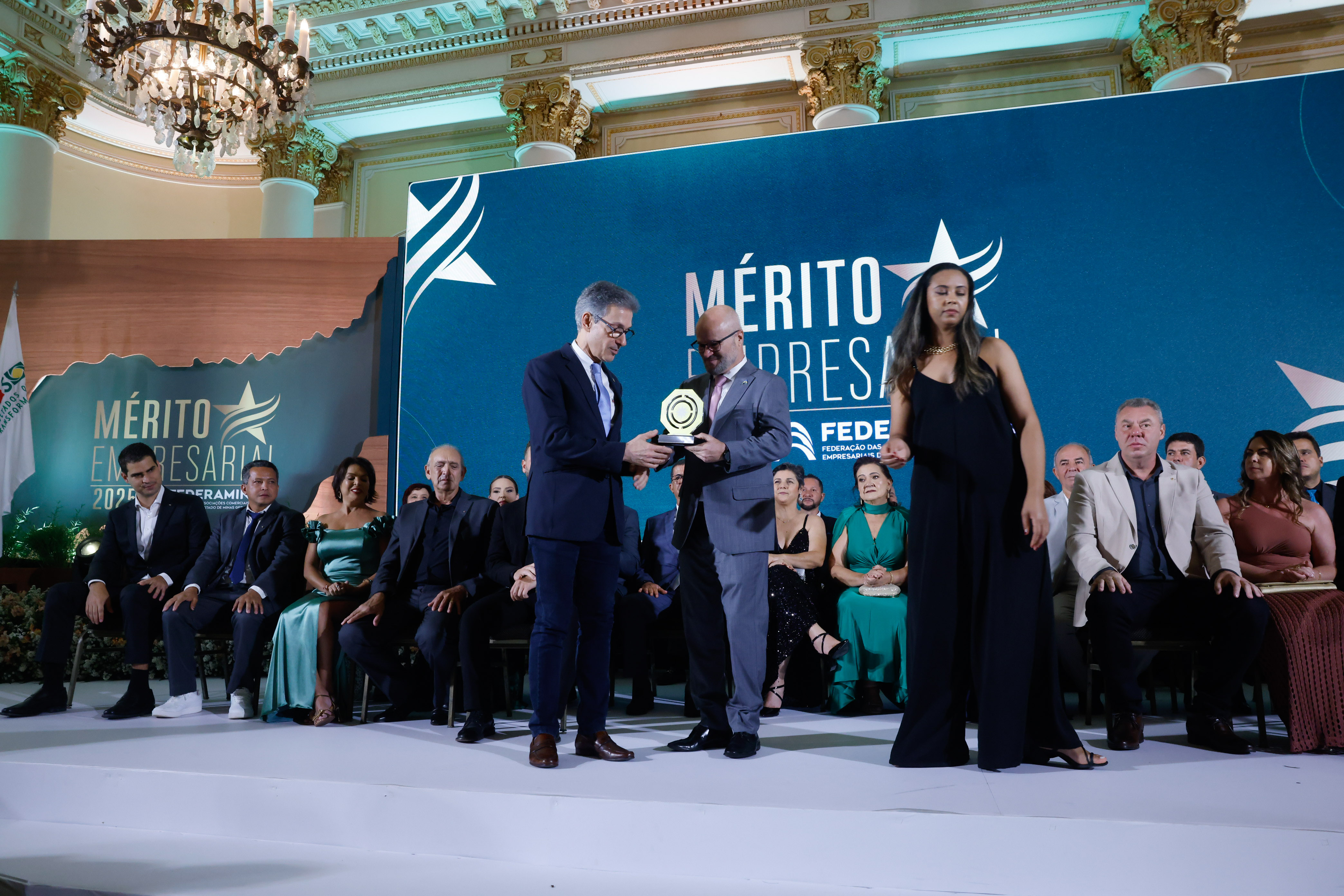 O governador Romeu Zema participou, nesse sábado (1/11) à noite, da solenidade do Mérito Empresarial da Federação das Associações Comerciais e Empresariais de Minas Gerais (Federaminas), que tem como propósito reconhecer e homenagear empresários de destaque no estado.