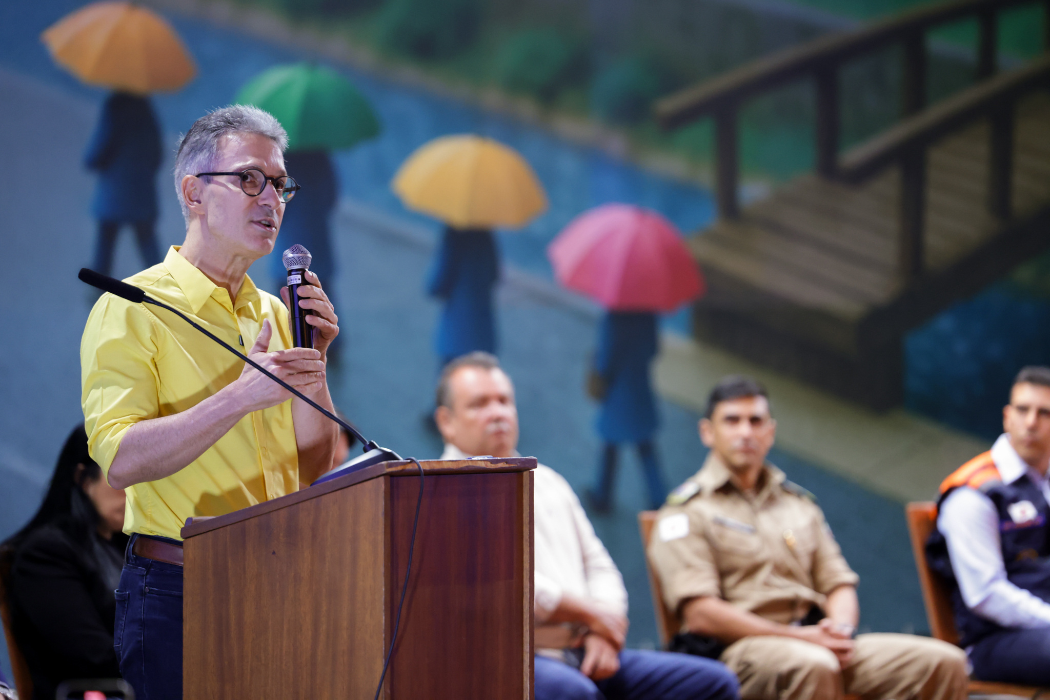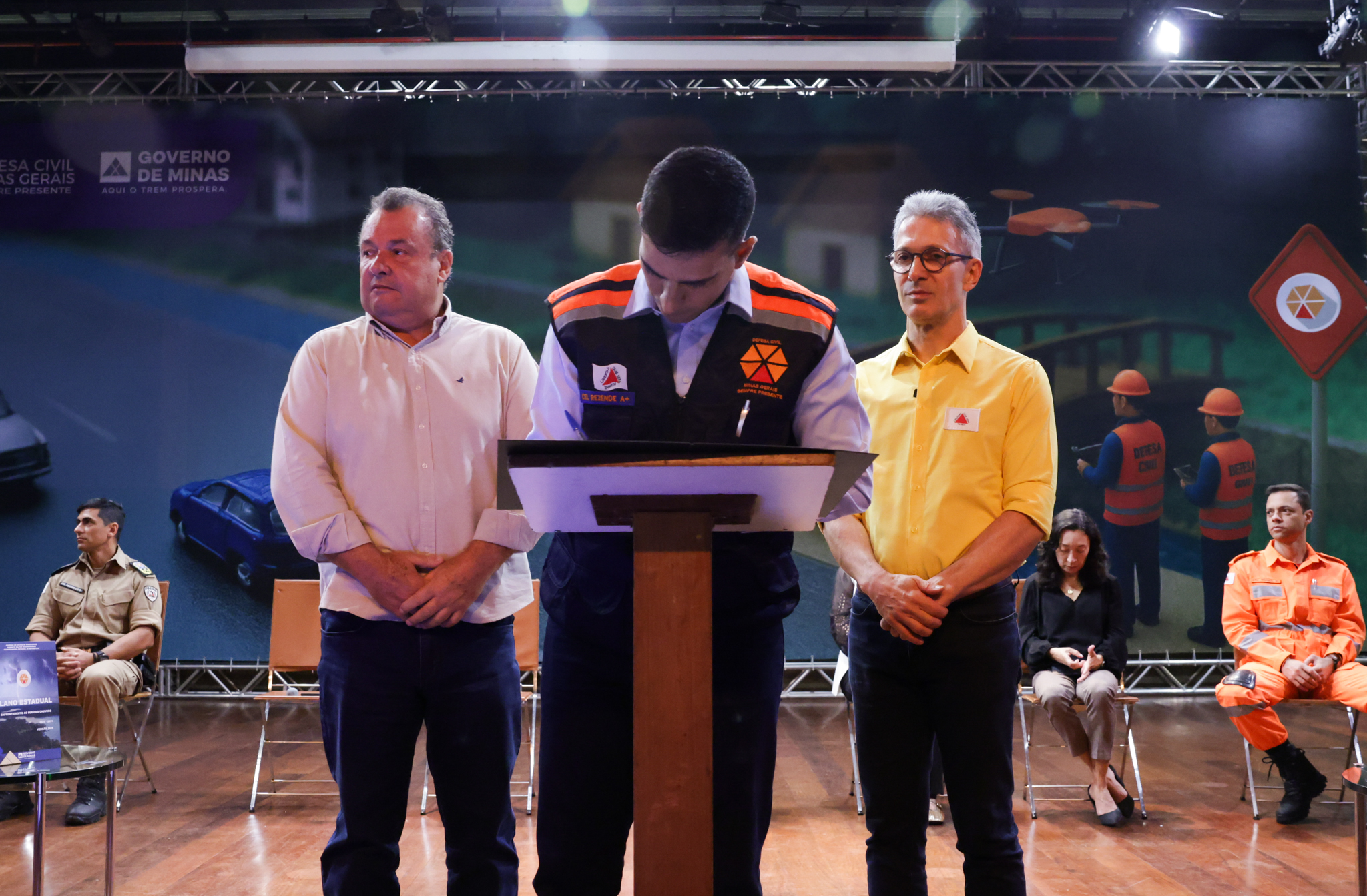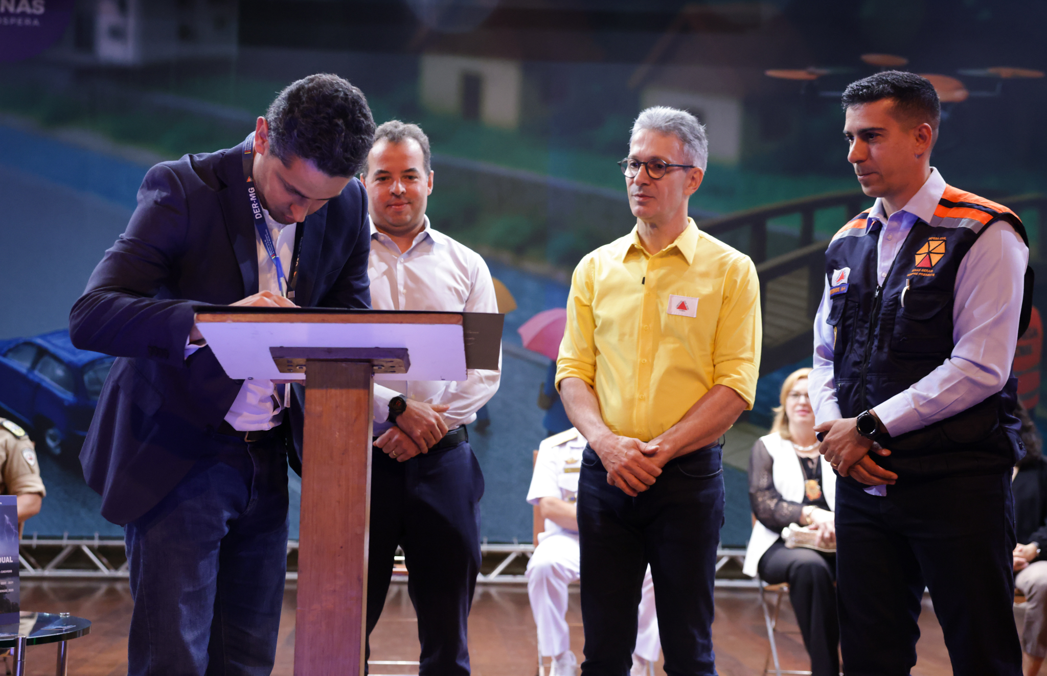 O governador Romeu Zema apresentou a iniciativa da Coordenadoria Estadual de Defesa Civil (Cedec) durante o "Seminário de Enfrentamento ao Período Chuvoso: estratégias de preparação e resposta para minimizar os efeitos das chuvas em Minas Gerais", realizado na Cidade Administrativa, em Belo Horizonte.