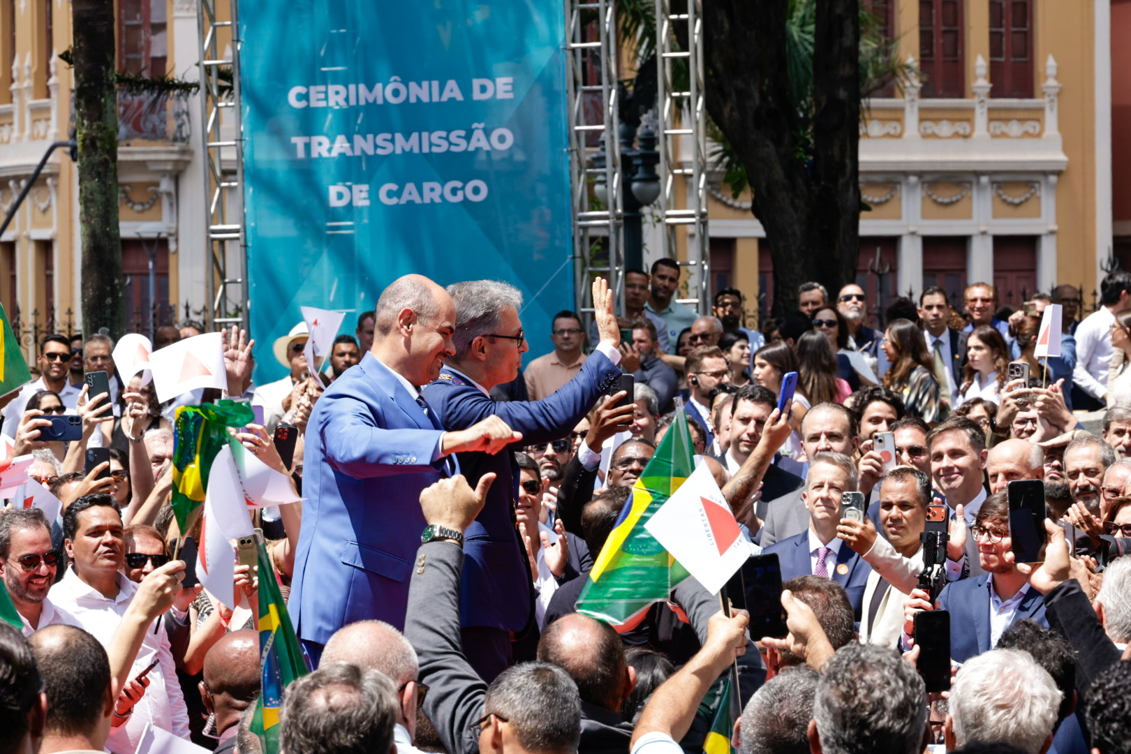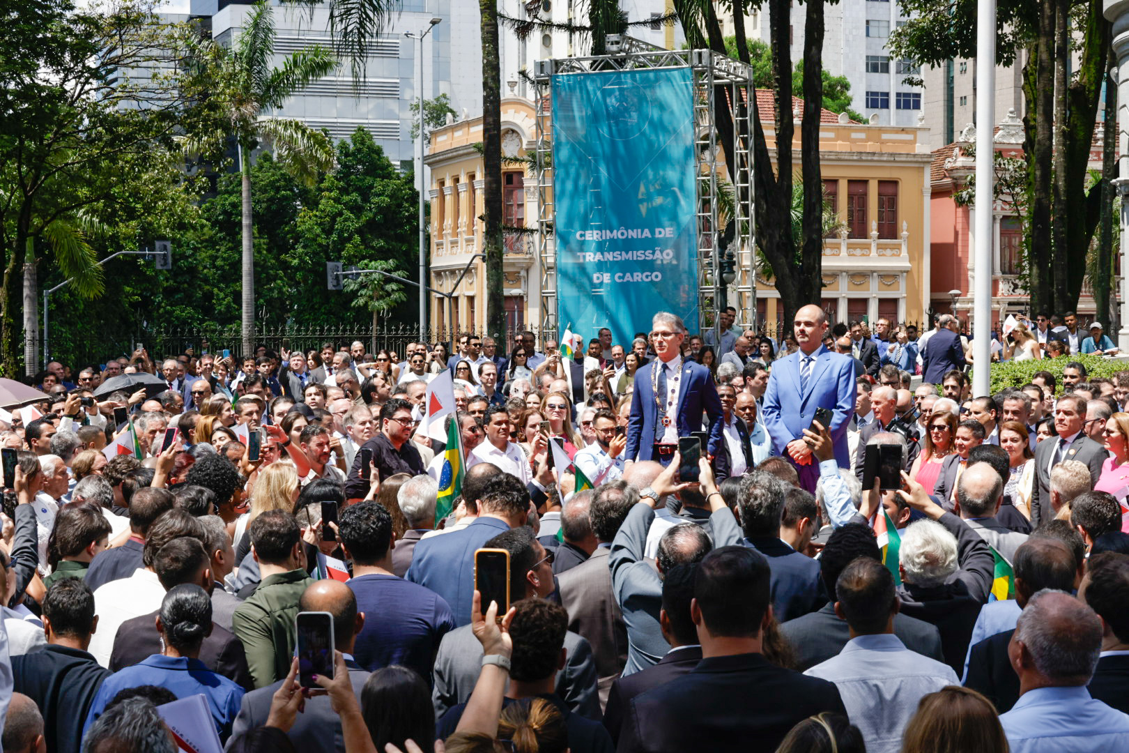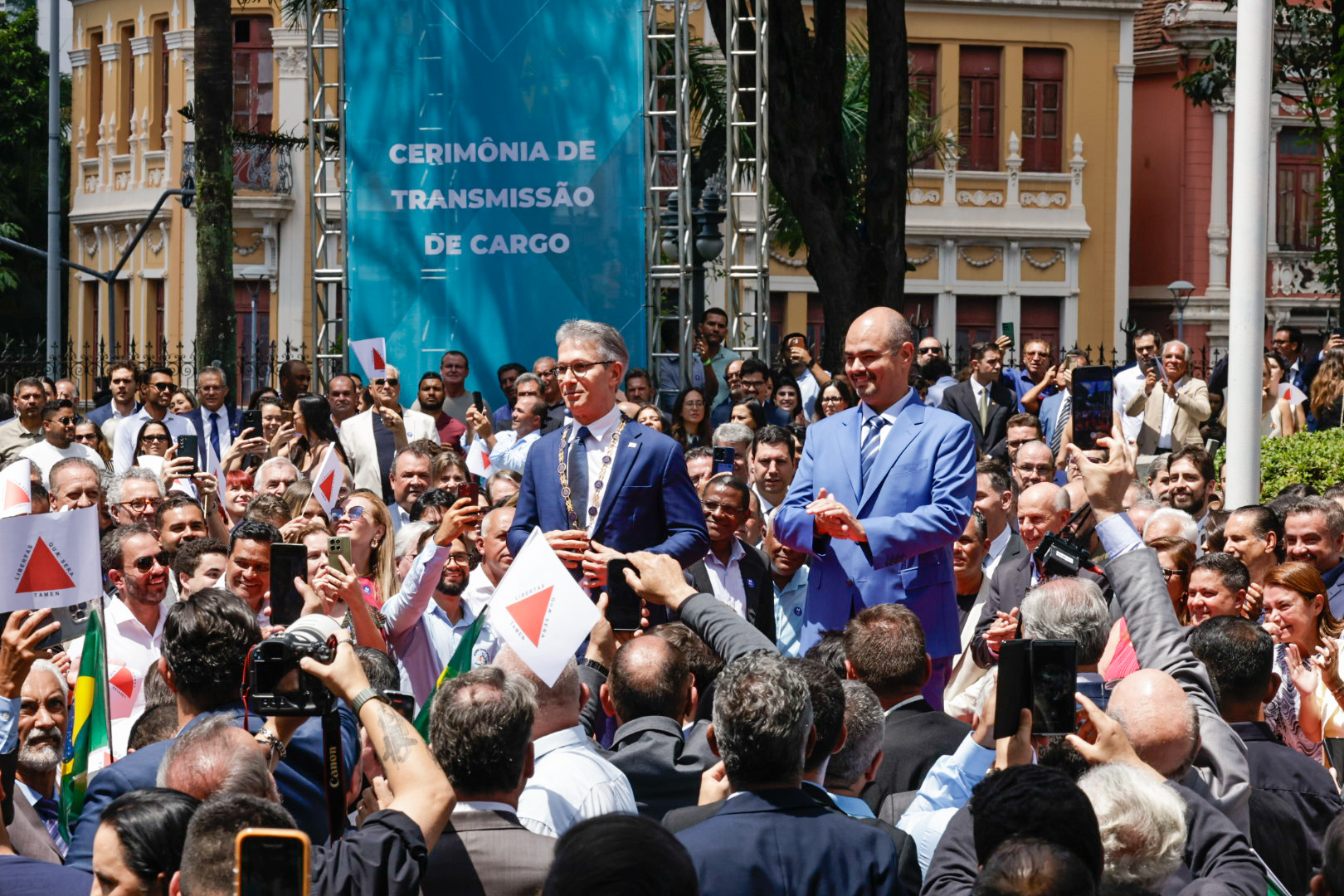 O Governo de Minas realizou, na manhã deste domingo (22/3), no Palácio da Liberdade, em Belo Horizonte, a cerimônia de transmissão do cargo de governador do Estado de Minas Gerais, de Romeu Zema para Mateus Simões. Mais cedo, o novo chefe do Executivo estadual já havia sido empossado durante evento realizado na Assembleia Legislativa de Minas Gerais (ALMG).