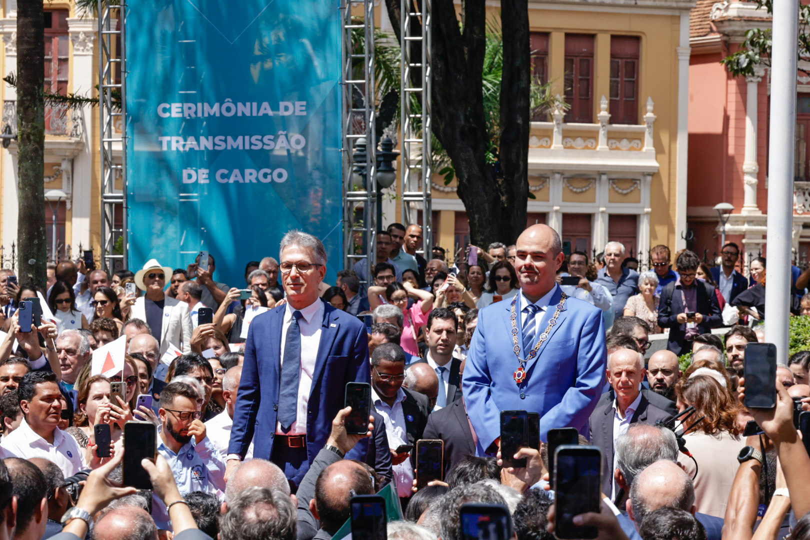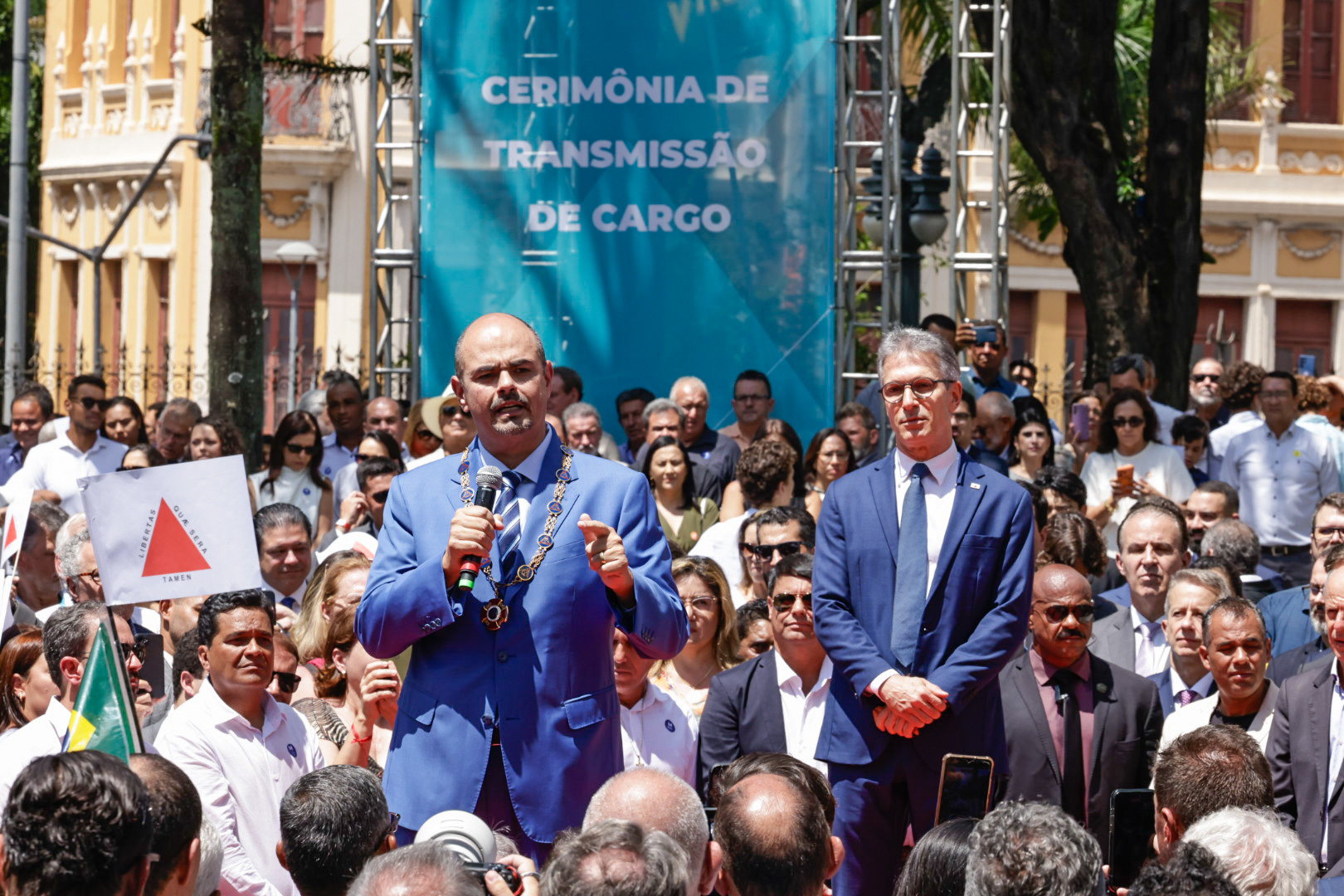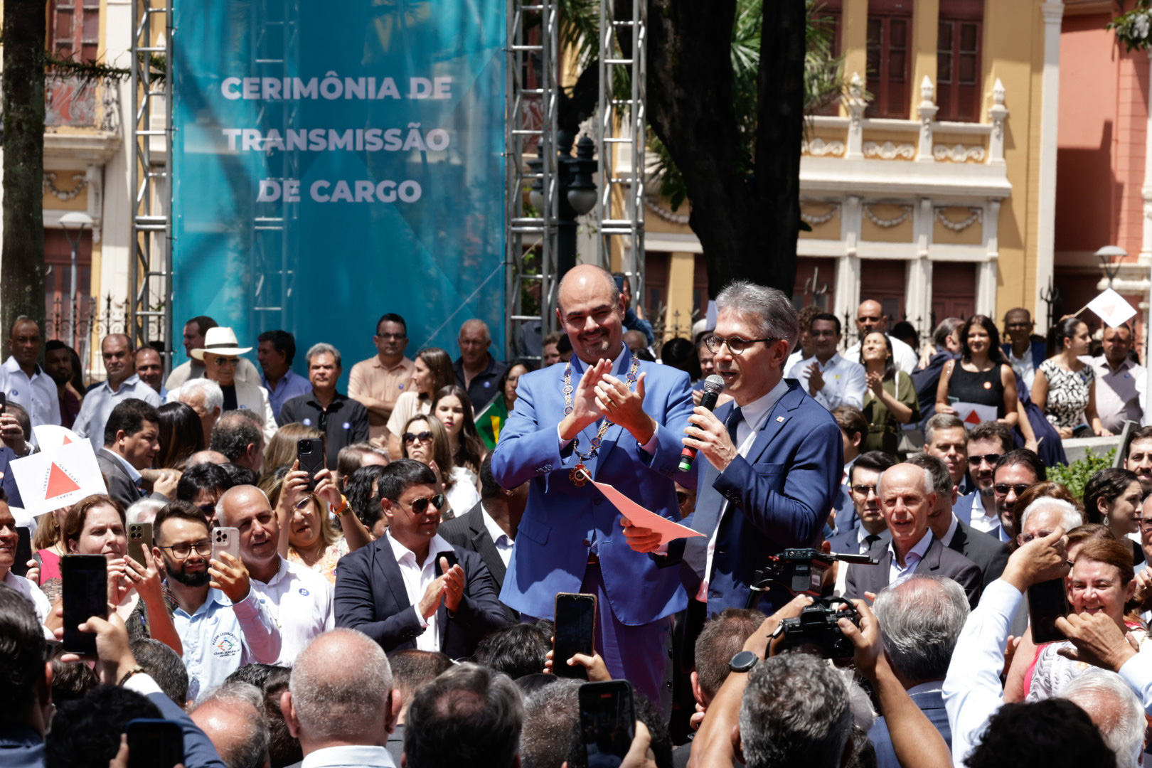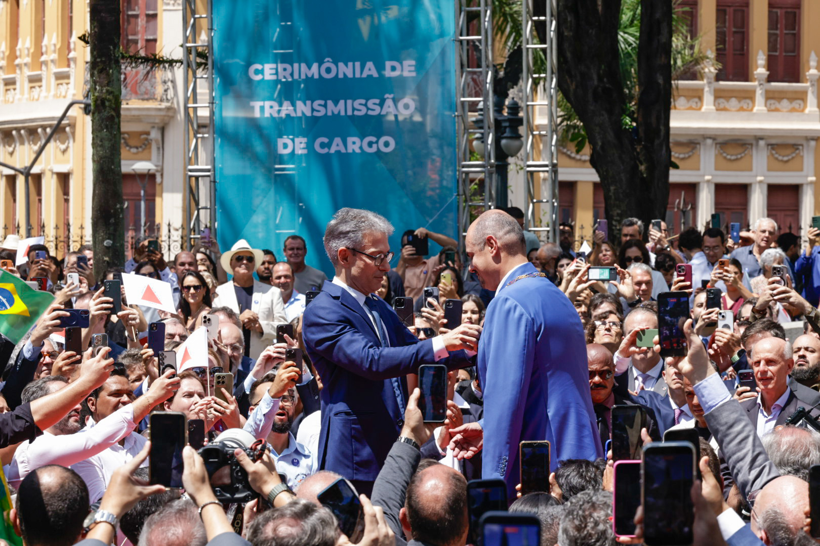 O Governo de Minas realizou, na manhã deste domingo (22/3), no Palácio da Liberdade, em Belo Horizonte, a cerimônia de transmissão do cargo de governador do Estado de Minas Gerais, de Romeu Zema para Mateus Simões. Mais cedo, o novo chefe do Executivo estadual já havia sido empossado durante evento realizado na Assembleia Legislativa de Minas Gerais (ALMG).