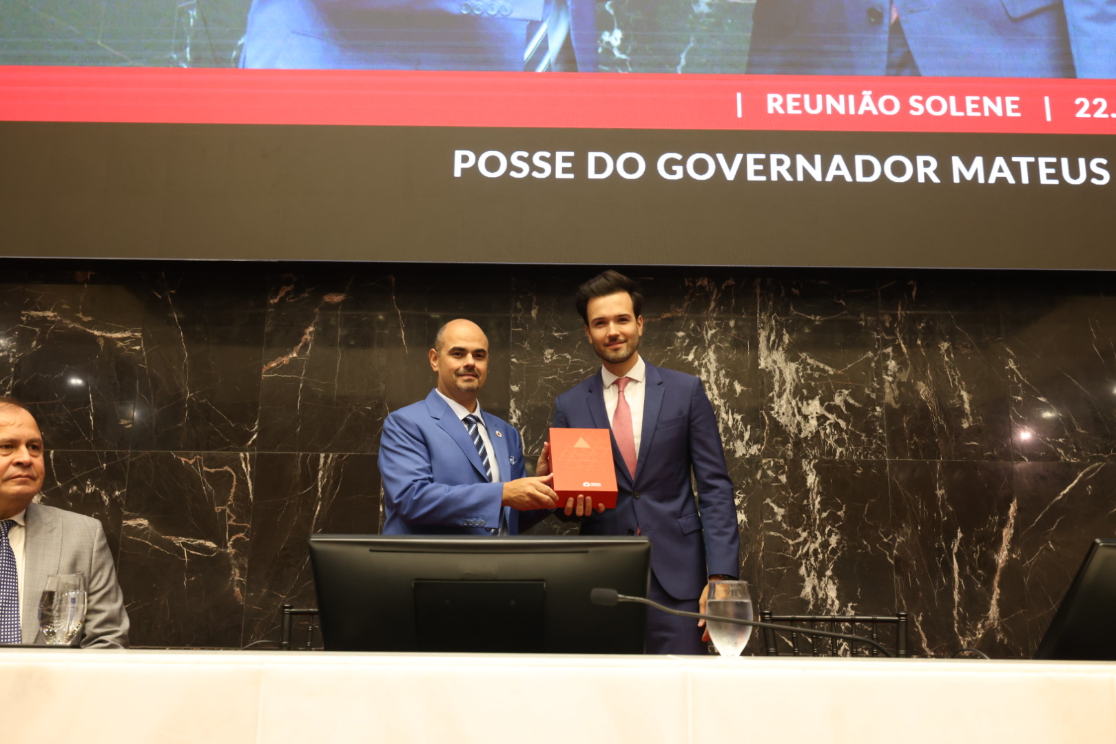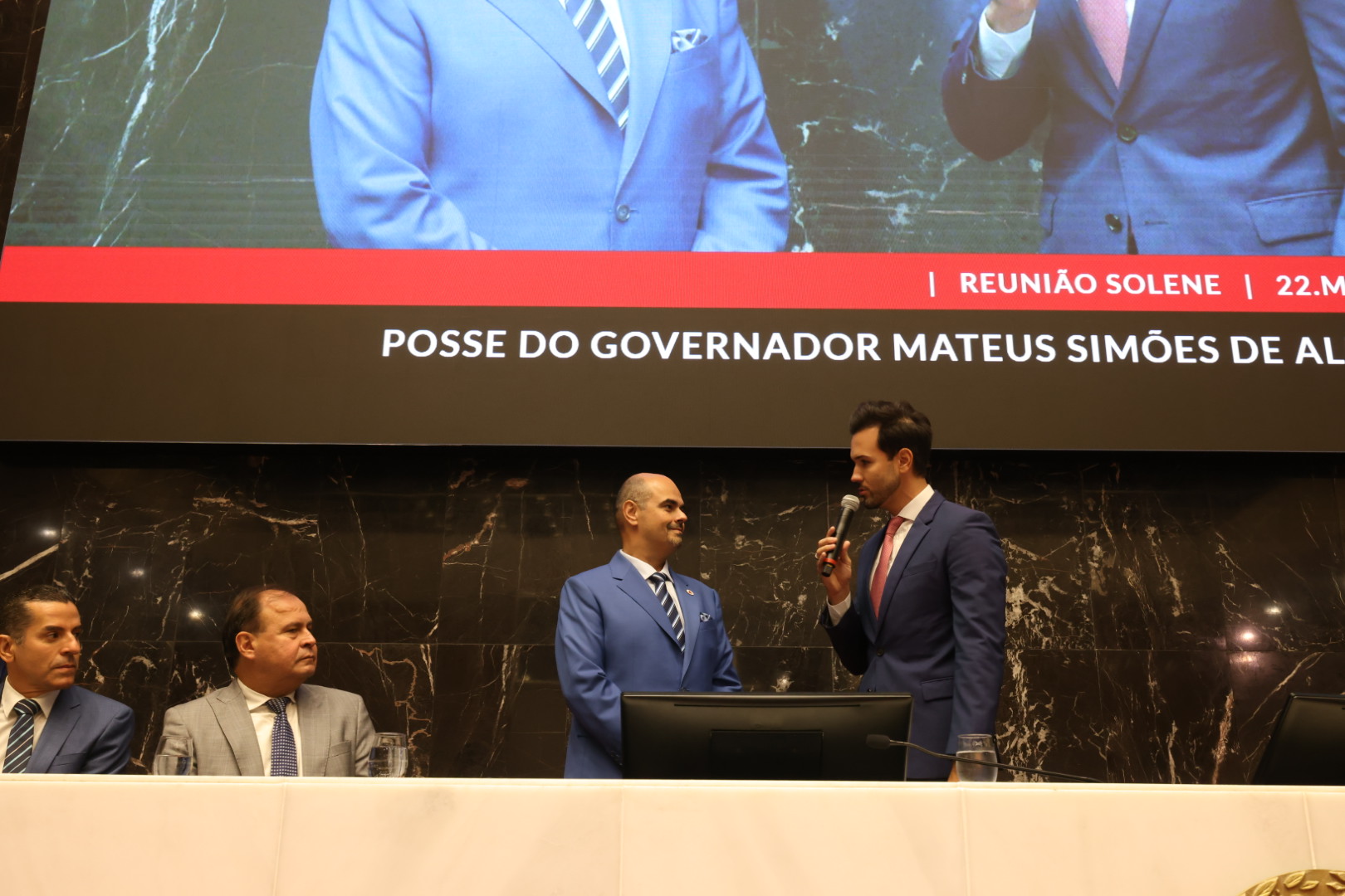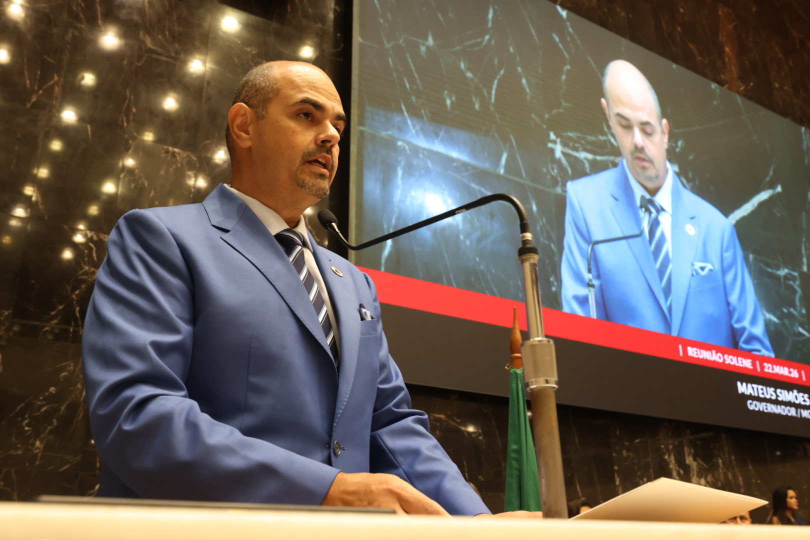 Mateus Simões tomou posse como governador de Minas Gerais neste domingo (22/3), durante Reunião Solene do Plenário da Assembleia Legislativa de Minas Gerais (ALMG). A cerimônia foi conduzida pelo presidente da Casa, o deputado estadual Tadeu Martins Leite. O novo chefe do Executivo estadual substitui o governador Romeu Zema, que renuncia ao cargo a partir deste domingo.