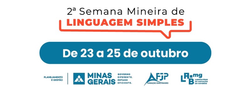 Com o objetivo de disseminar a importância da comunicação clara e acessível no serviço público mineiro, o Governo de Minas, por meio do Laboratório de Inovação LAB.mg, irá promover, entre quarta (23/10) e sexta-feira (25/10), a segunda Semana Mineira de Linguagem Simples.