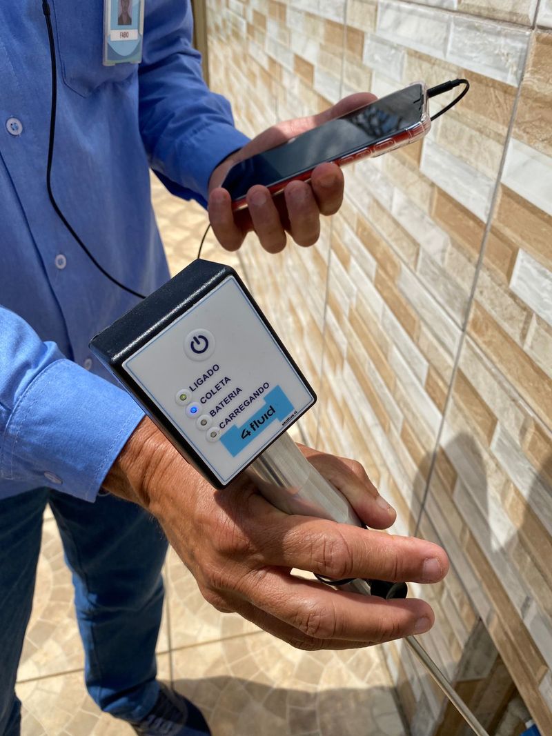 O sistema do 4Fluid está ligado a uma haste de escuta otimizada, que detecta perdas de água até mesmo em tubulações de menor diâmetro. Para que ela funcione, o operador apoia o equipamento nos cavaletes dos imóveis e aguarda dez segundos.