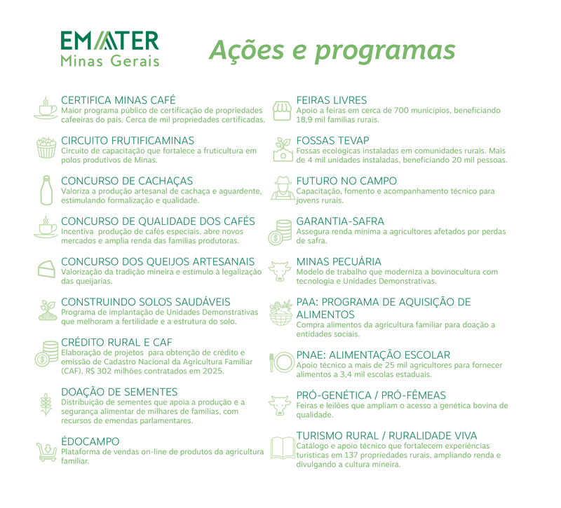 Já a política de Educação Corporativa da empresa permitiu, somente em 2025, mais de 280 capacitações, com a participação de quase 2 mil profissionais da Emater-MG.