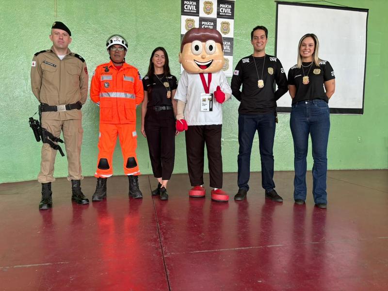 O Tirinha, mascote da PCMG, levou alegria e descontração aos participantes, prestigiando as atividades na escola. A chefe da Dopcad explicou a participação da PCMG na ação voltada para os adolescentes. "Falamos para eles sobre os riscos que estão expostos na internet e que podem acarretar consequências em suas vidas. Também orientamos quanto aos crimes contra dignidade sexual e violência doméstica de modo geral. Os alunos assistiram atentos. Tenho certeza que será de grande valia para o cotidiano deles", destacou a delegada Renata Ribeiro. “Foi uma manhã muito produtiva. Os alunos gostaram bastante e tenho certeza que aprenderam muito. A escola estava toda empenhada no evento, entendendo a importância da proximidade das forças de segurança junto da comunidade. Não há dúvidas de que conseguimos despertar o interesse de muitos ali”, garantiu a delegada Isabella Franca, da Superintendência de Informações e Inteligência Policial (Siip). Para a chefe do Defam, delegada-geral Carolina Bechelany, foi grandiosa a atuação integrada. “Parabenizo todos os envolvidos por essa iniciativa tão importante e expressiva!”, elogiou.