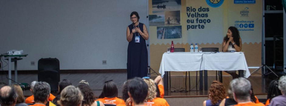 Na sequência, a analista ambiental do IEF, Janaína Mendonça, falou sobre a importância da regularização ambiental dos imóveis rurais para a segurança hídrica na bacia, com destaque para o programa PRA Produzir Sustentável, criado para mobilizar e engajar proprietários e possuidores rurais de Minas Gerais.