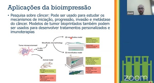 A 22ª edição do Sisema ComCiência recebeu, nessa quinta-feira (18/5), o professor Dawidson Assis Gomes, do Departamento de Bioquímica e Imunologia da UFMG, para abordar os avanços dos estudos utilizando a bioimpressão em Minas e no Brasil. O professor ressaltou que essa tecnologia contribui para racionalizar o uso de animais nas pesquisas.