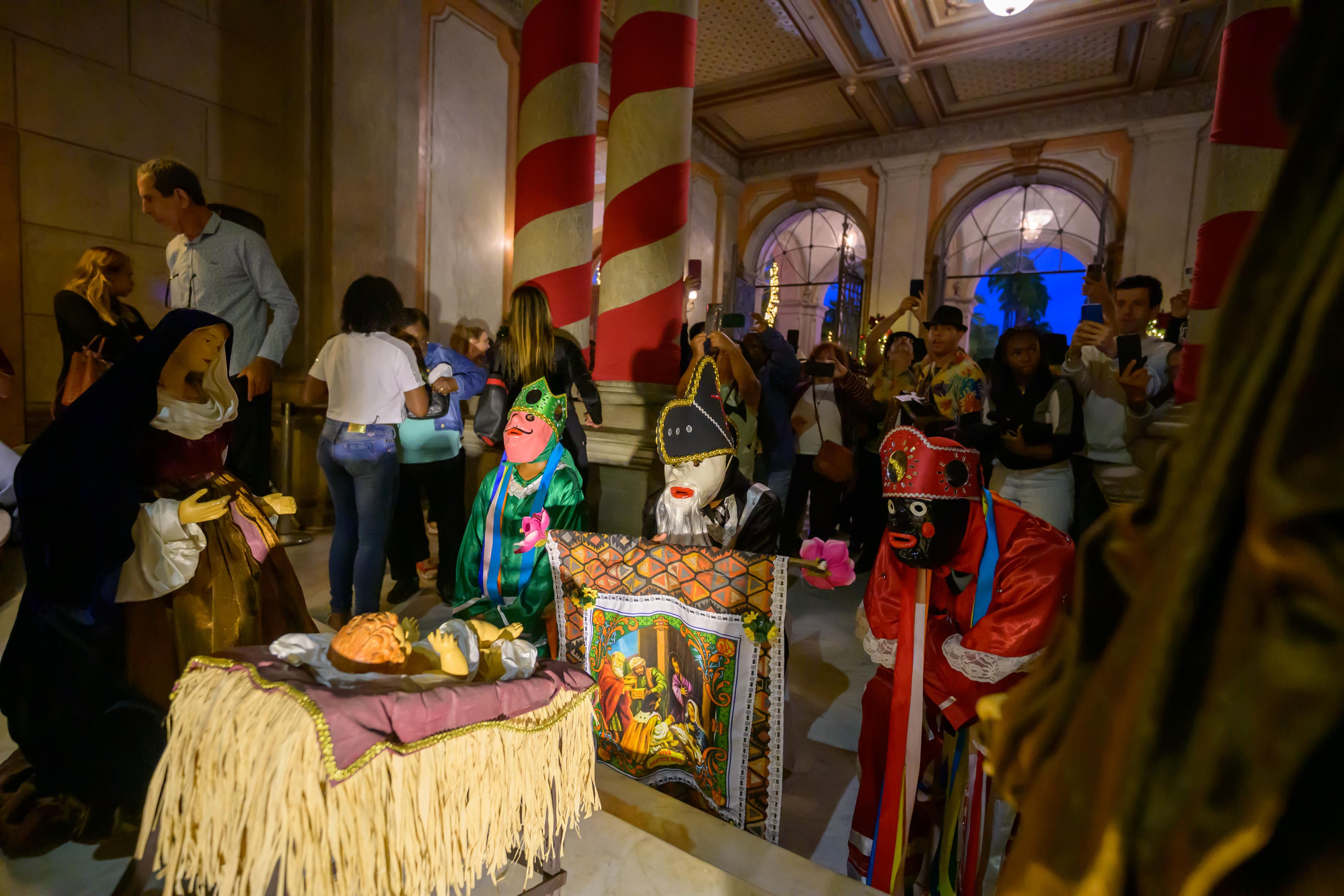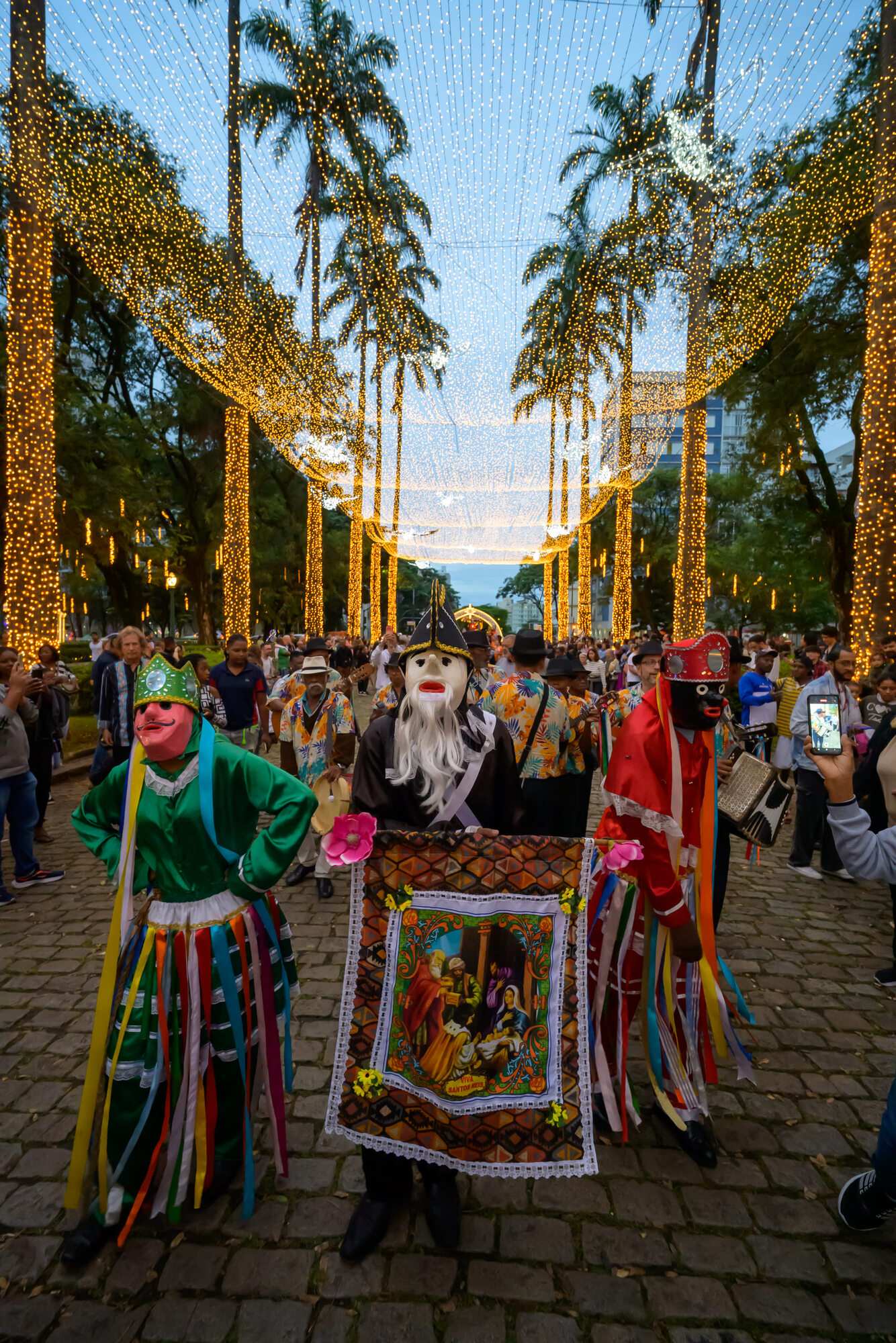 A Praça da Liberdade recebeu o contagiante Cortejo de Folias de Reis, na terça-feira (6/01), uma celebração que uniu música, devoção e tradição para marcar o encerramento do Natal da Mineiridade. A iniciativa é do Governo de Minas, por meio da Secretaria de Estado de Cultura e Turismo (Secult-MG), da Fundação Clóvis Salgado (FCS) e do Instituto Estadual do Patrimônio Histórico e Artístico de Minas Gerais (Iepha-MG).