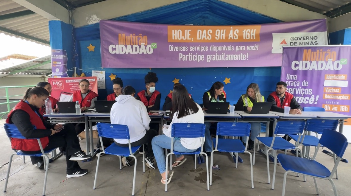 A Escola Estadual Efigênio Salles, na Vila Cafezal, no bairro Serra, em Belo Horizonte, se transformou em uma verdadeira praça de serviços públicos nesta sexta-feira (23/1), durante o primeiro Mutirão Cidadão de 2026, ação do Governo de Minas que reuniu mais de 20 atendimentos essenciais e beneficiou mais de 3 mil pessoas.