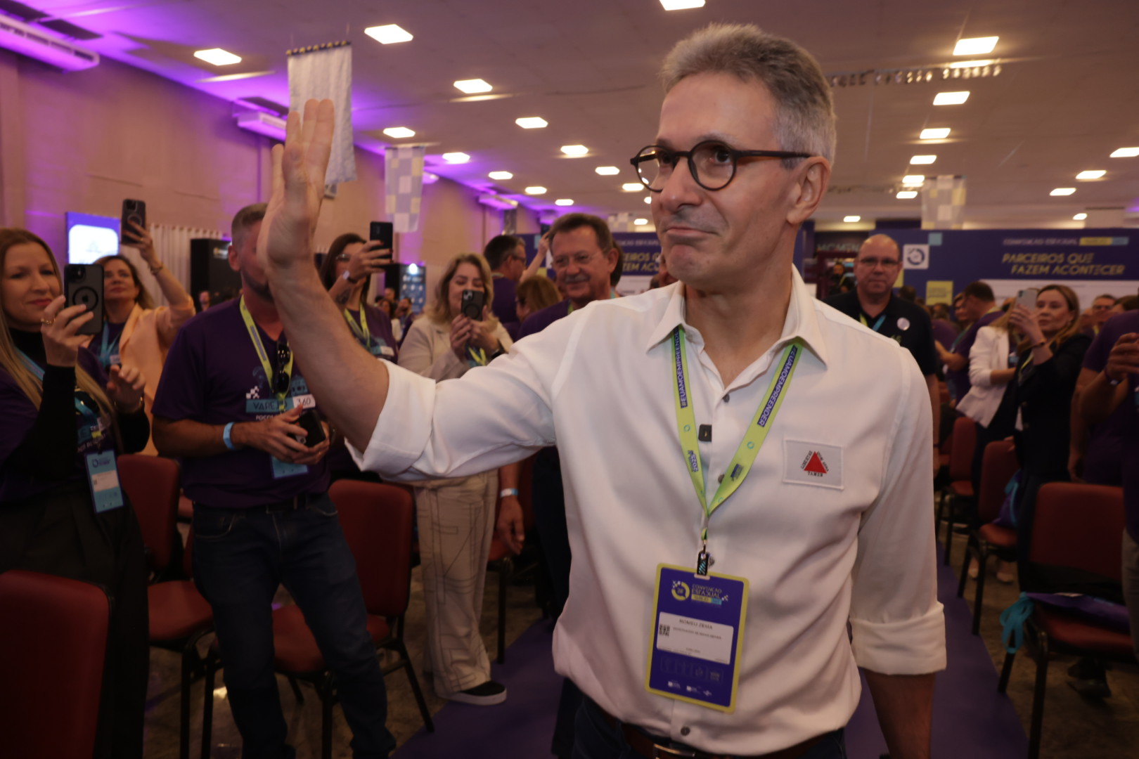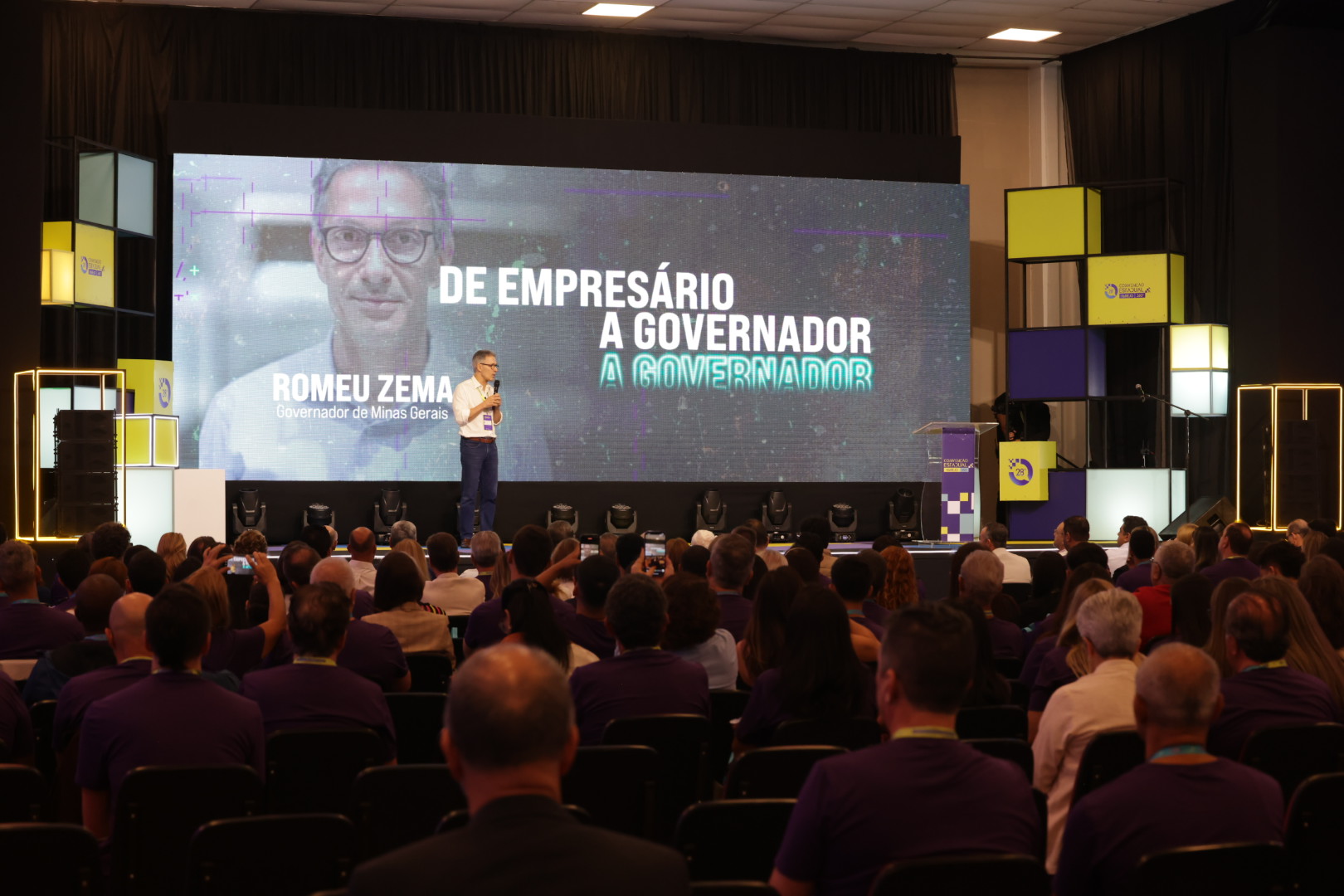 O governador de Minas Gerais, Romeu Zema, ministrou, na manhã desta segunda-feira (28/9), a palestra “De empresário a governador”, na 28ª Convenção Estadual Varejo 360º, em Poços de Caldas. No evento, ele compartilhou com o público sua trajetória como empresário até chegar ao cargo de chefe do Executivo estadual.