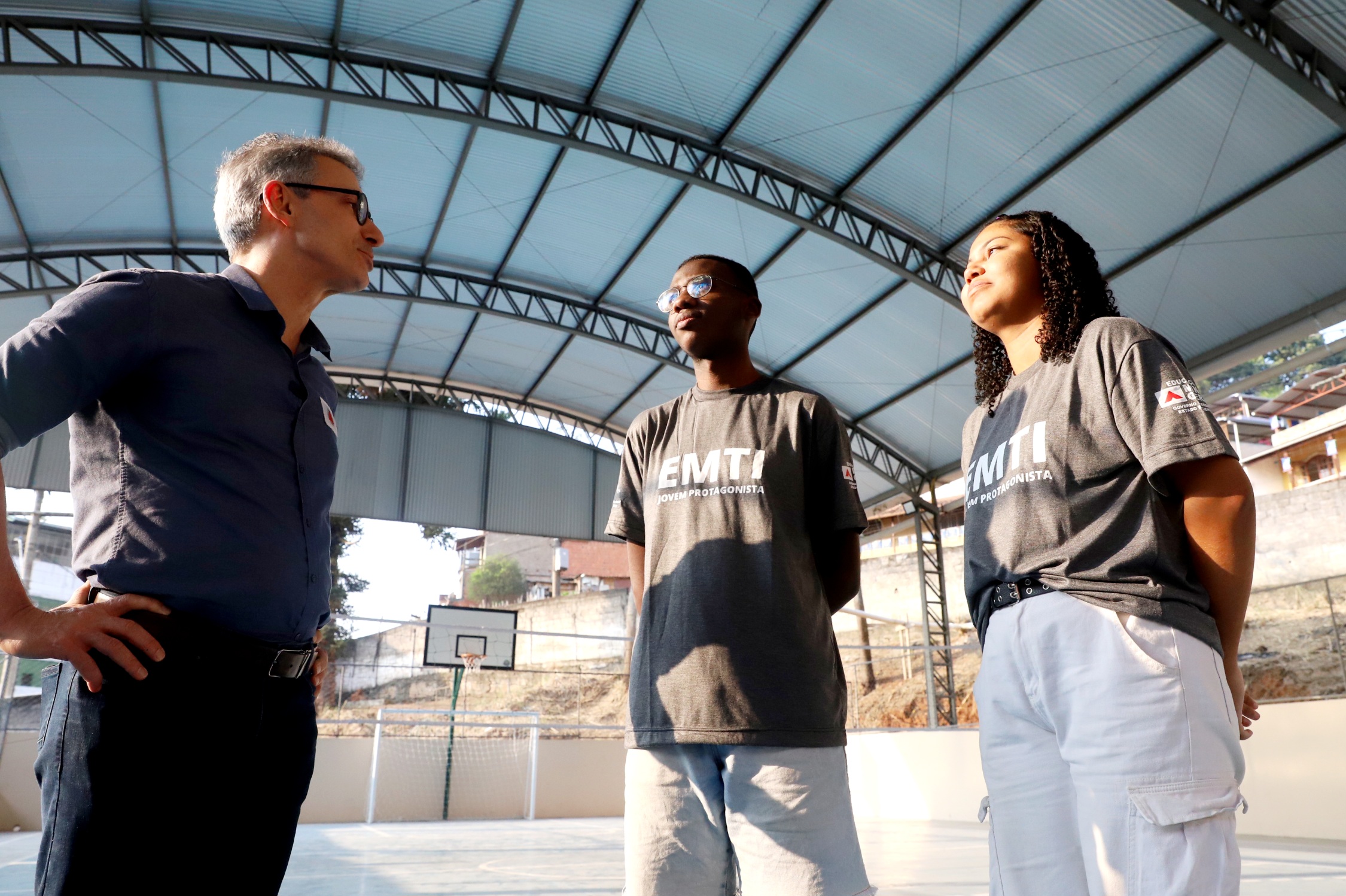 Governador vistoria obras de escola em Juiz de Fora que recebeu novo refeitório, laboratório de informática e quadra coberta