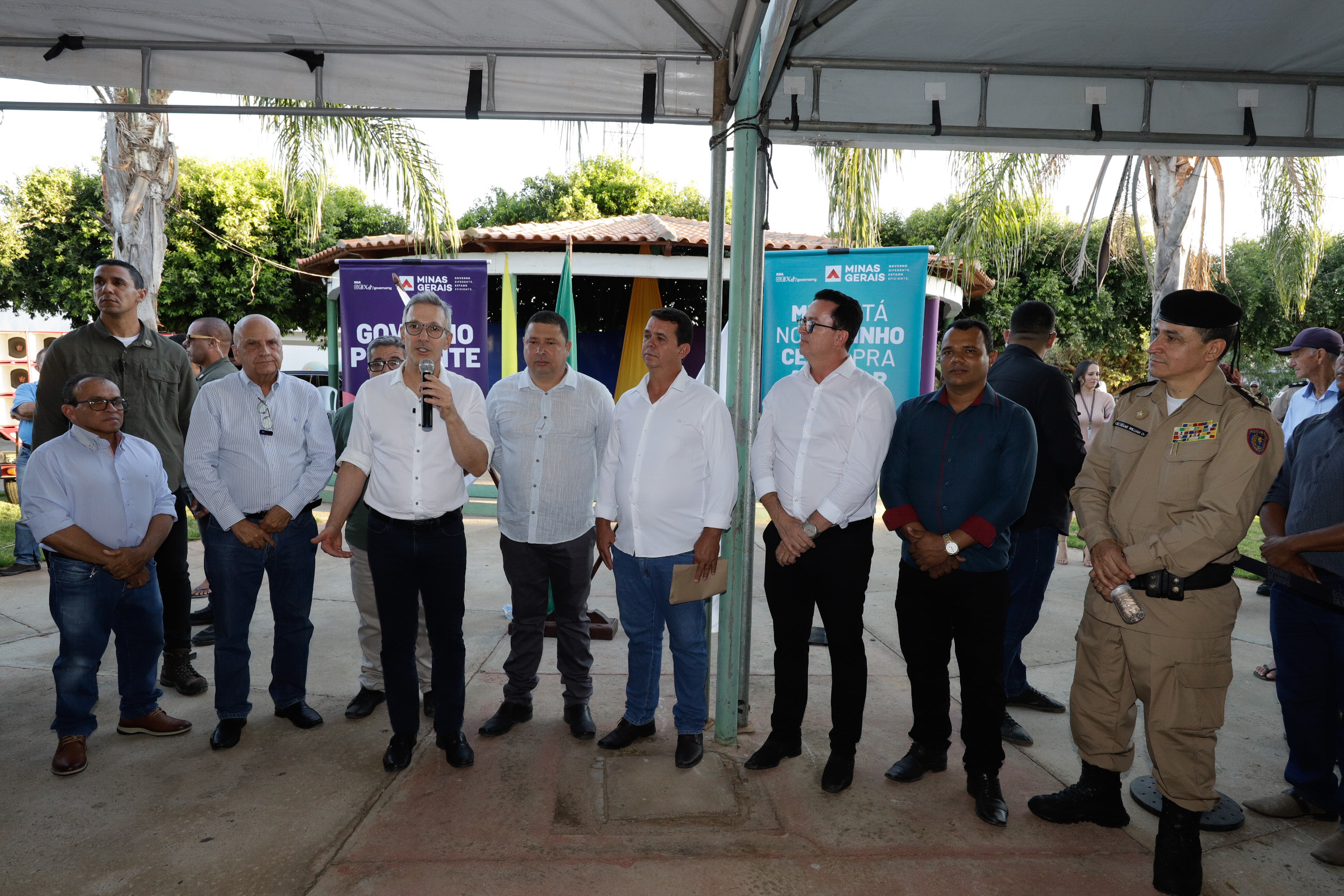 O governador Romeu Zema participou, nesta quinta-feira (27/6), em Mamonas no Norte de Minas, da solenidade de entrega da quadra poliesportiva e de 1,7 quilômetro de calçamento de ruas do perímetro urbano do município.