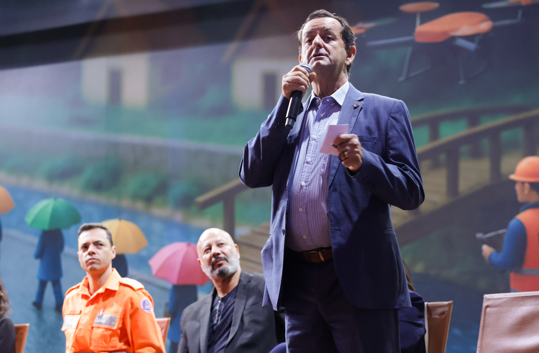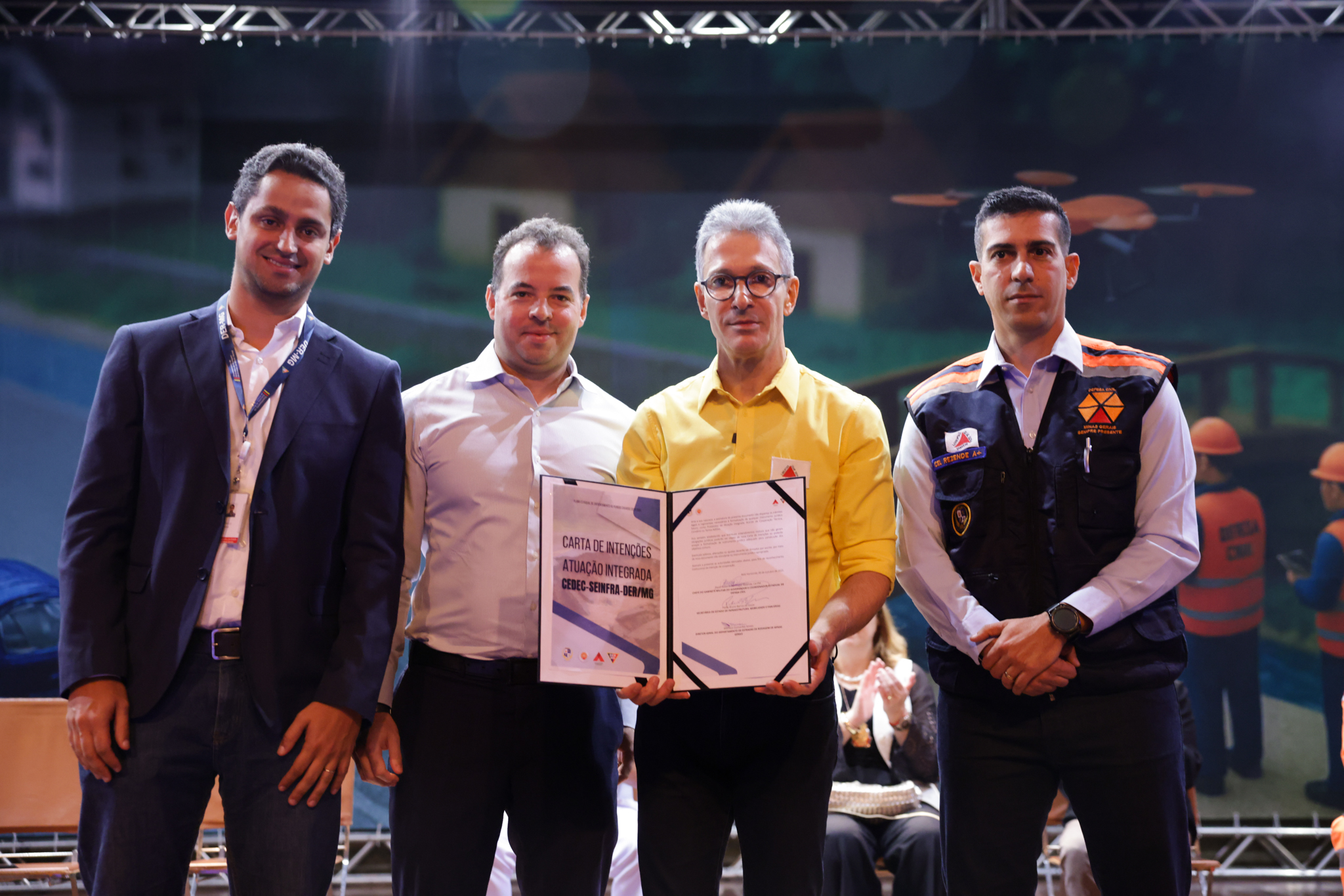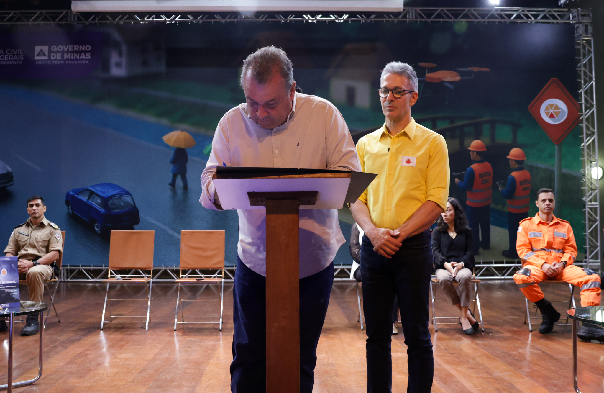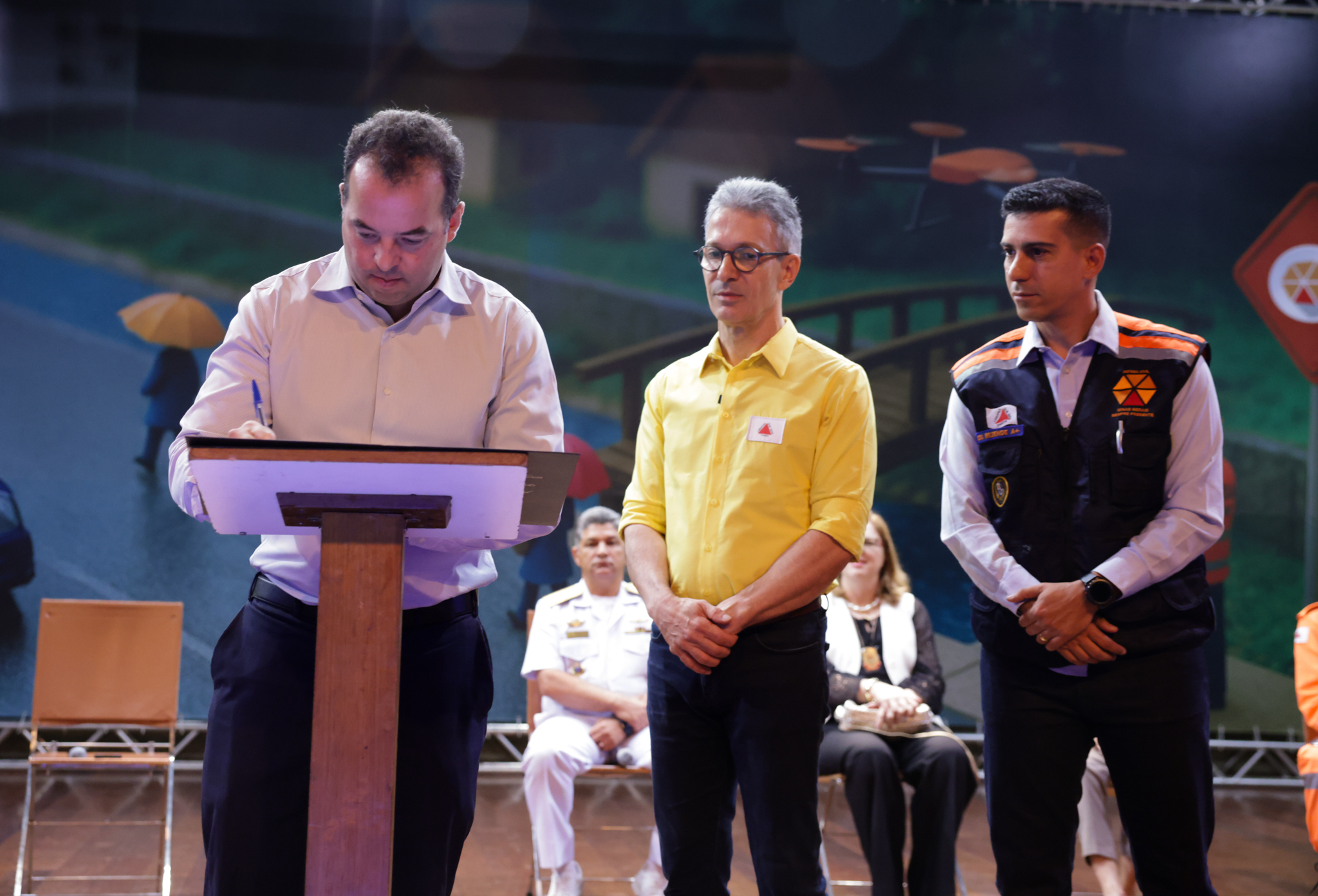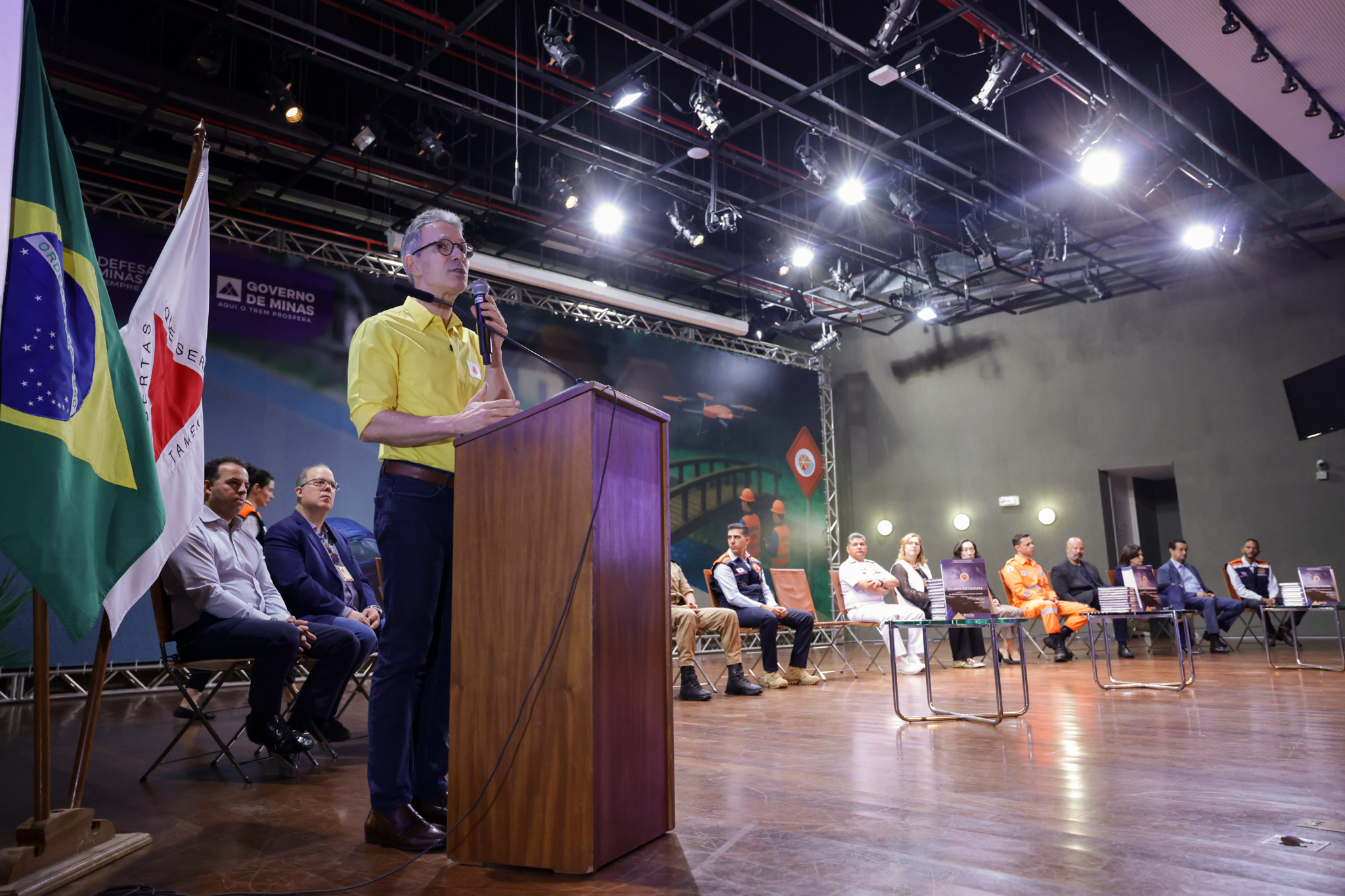 O governador Romeu Zema apresentou a iniciativa da Coordenadoria Estadual de Defesa Civil (Cedec) durante o "Seminário de Enfrentamento ao Período Chuvoso: estratégias de preparação e resposta para minimizar os efeitos das chuvas em Minas Gerais", realizado na Cidade Administrativa, em Belo Horizonte.