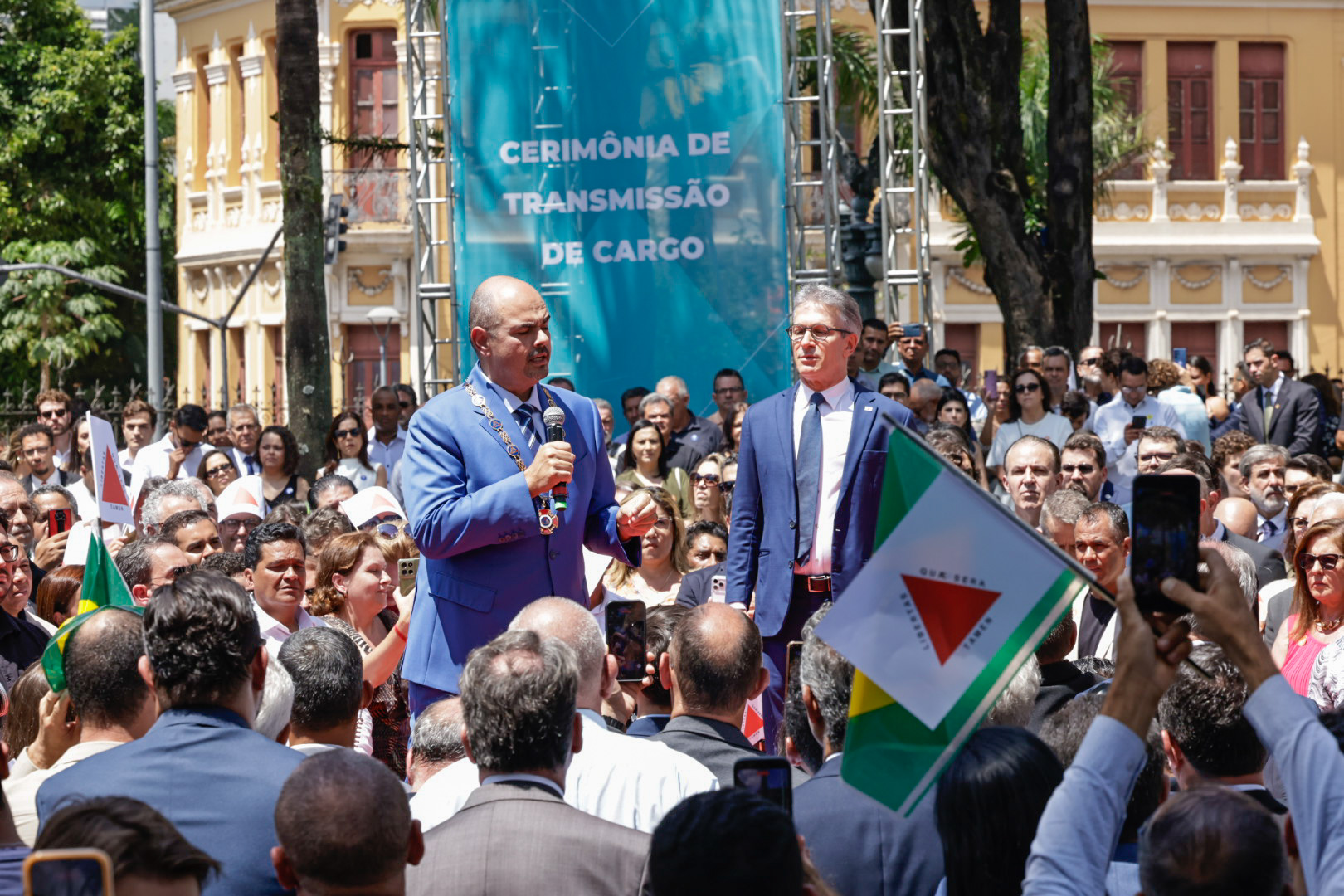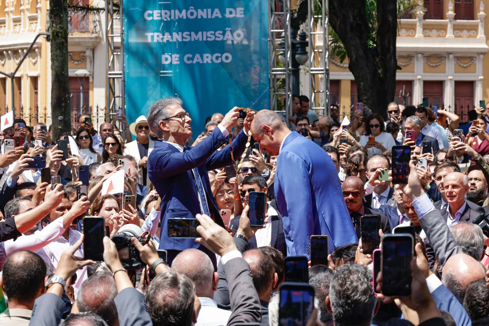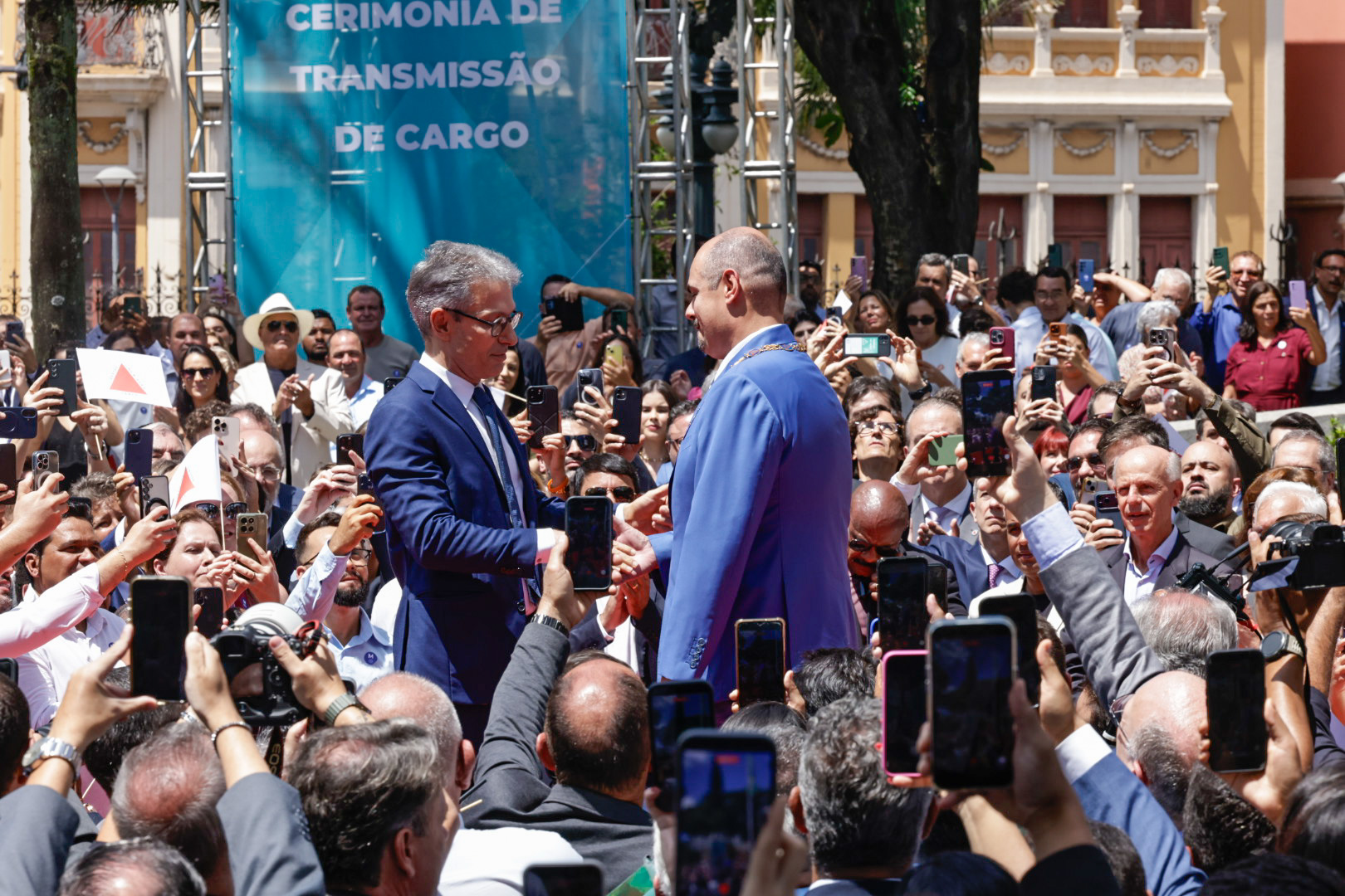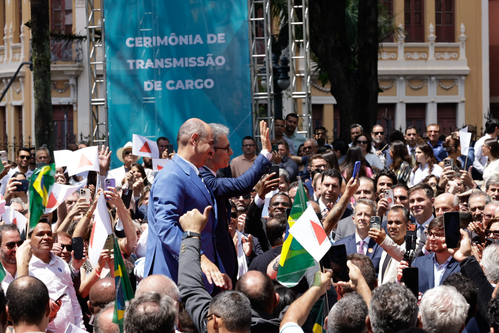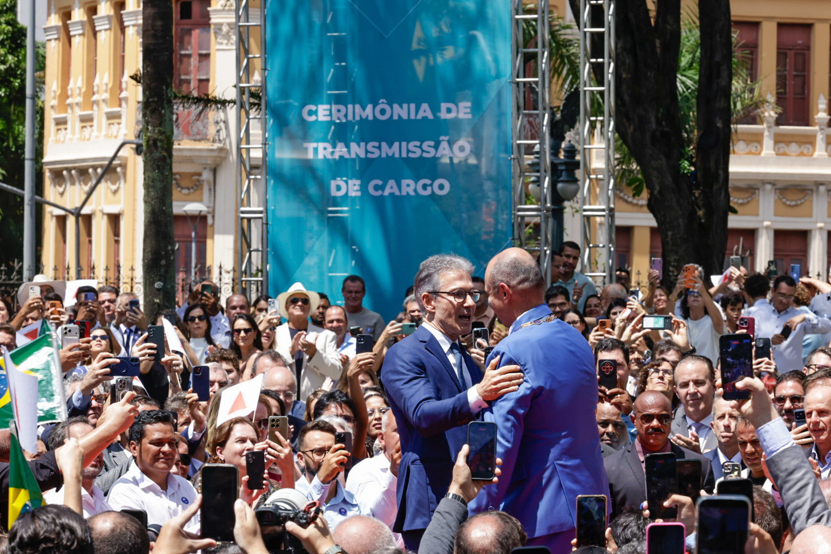 O Governo de Minas realizou, na manhã deste domingo (22/3), no Palácio da Liberdade, em Belo Horizonte, a cerimônia de transmissão do cargo de governador do Estado de Minas Gerais, de Romeu Zema para Mateus Simões. Mais cedo, o novo chefe do Executivo estadual já havia sido empossado durante evento realizado na Assembleia Legislativa de Minas Gerais (ALMG).