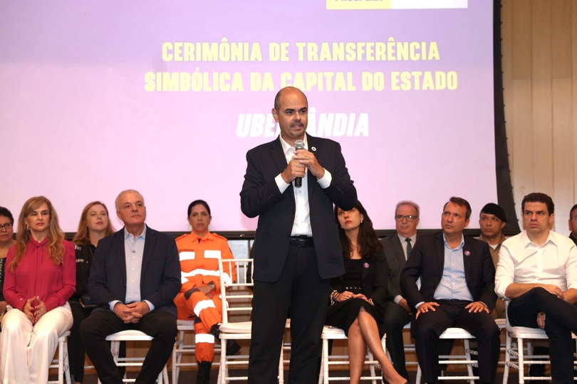 O governador de Minas Gerais, Mateus Simões, participou, nesta quinta-feira (26/3), da cerimônia de transferência simbólica da capital do Estado para Uberlândia. O momento contou com a presença de autoridades, convidados e da população. A cidade do Triângulo Mineiro será a capital de Minas até este sábado (28/3).