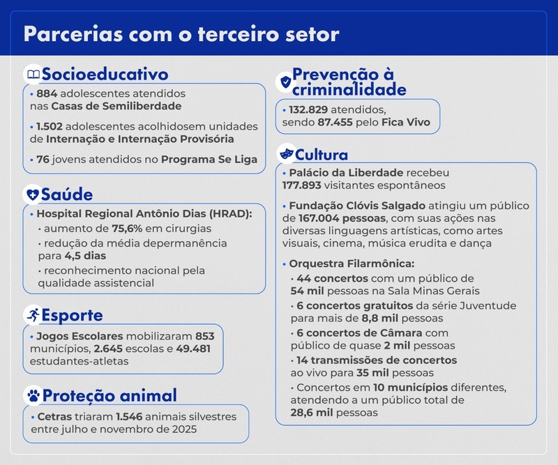 O Governo de Minas, por meio da Secretaria de Estado de Planejamento e Gestão (Seplag-MG), avançou, em 2025, nas ações de eficiência do gasto público e no aprimoramento dos serviços prestados aos mineiros. Com a aplicação do Orçamento Base Zero (OBZ) em todos os órgãos do Estado no processo de elaboração do orçamento, mais recursos foram direcionados para políticas públicas eficientes. O modelo de parcerias com o terceiro setor também foi expandido em diversas áreas.