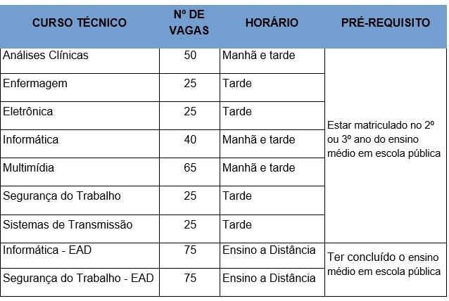 Confira, abaixo, o quadro de cursos e vagas: